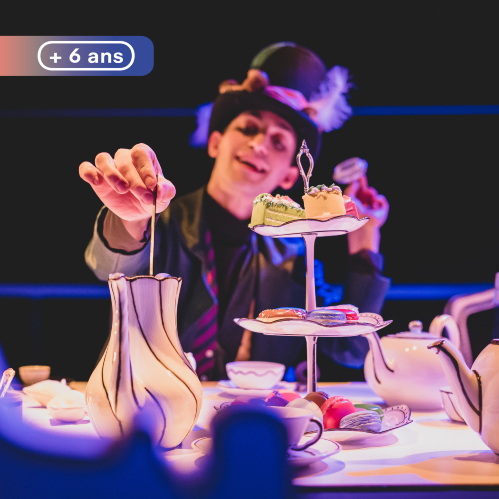 Une plongée poétique dans le pays des merveilles Sur un fil tendu, le Chapelier Fou avance entre rêve, folie et réalité. Autour de lui, le Lièvre de Mars, le Loir, des marionnettes animées, et une mystérieuse Alice qui change de forme à chaque apparition. Le tout, rythmé par une musique jouée en direct. Ce spectacle librement inspiré du conte de Lewis Carroll réinvente la célèbre scène du thé dans un univers visuel monochrome et décalé. Un voyage loufoque et sensible où le temps semble suspendu. Un bijou d’inventivité, à vivre dès l’enfance.